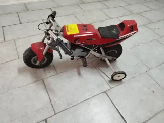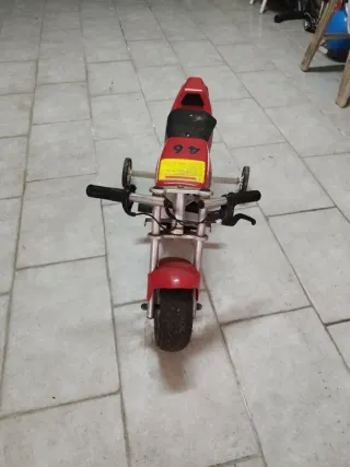 Moto elettrica per bambini, perfetta per i più piccoli. (Batteria da cambiare) - Design sportivo. - Colore rosso vivace. - Ruote stabilizzatrici incluse.