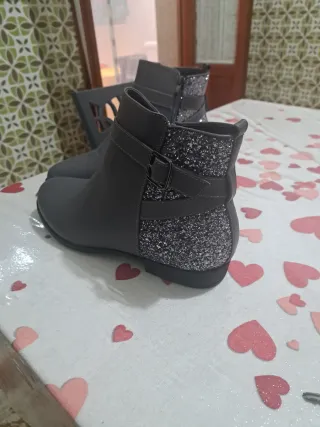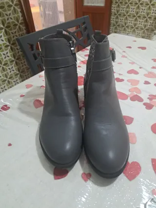 Stivaletti eleganti in un colore grigio versatile. - Dettaglio con fibbia e zip laterale. - Inserti scintillanti sul lato. - Tacco comodo.
