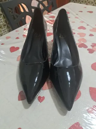 Eleganti scarpe nere con tacco, perfette per ogni occasione. - Design a punta. - Finitura lucida. - Logo sul sottopiede.
