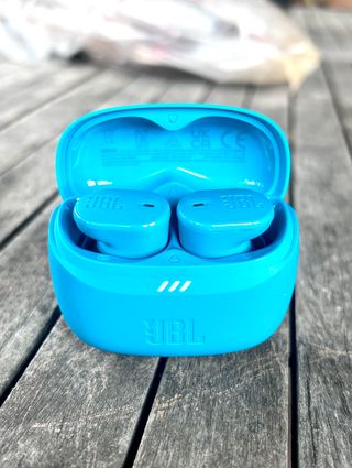 Cuffie JBL Tune Buds 2 colore turchese wireless con Cancellazione del Rumore, Pure Bass Sound di ottima qualità, Water and Dust Resistent, comandi touch. Qualitativamente ottime, con possibilità di personalizzare il suono con app JBL, leggere e comodissime, durata della batteria di 48 ore tra cuffie e base di ricarica. Condizioni perfette, manca solo la scatola e il cavo ma può esssre usato un qualsiasi usb type-c