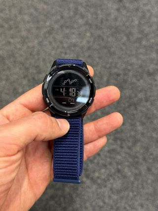 Orologio da polso con cinturino in tessuto blu. - Display digitale. - Cinturino in nylon. - Chiusura a fibbia. - cronometro , water resistant , allarmi ,