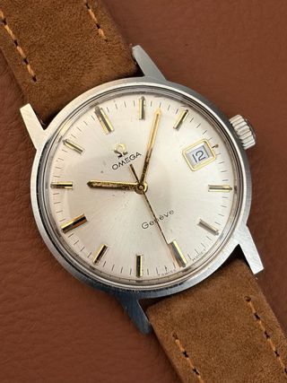 🟢 FOR SALE 🟢 💎 Seguimi su Instagram @amwatches__ Propongo in vendita bellissimo orologio vintage anni ‘70 della maison Omega, modello Geneve ref. 136.070 a carica manuale con calibro 613, cassa in acciaio da 34mm con datario a ore 15, corona originale dell’epoca logata Omega, vetro plexi generico, cinturino nuovo in pelle scamosciata di colore marrone. Sul fondello è riportata la referenza 136.041 assegnata a d un altro modello di Omega Geneve. Segnalo per massima trasparenza che il fondello potrebbe essere stato sostituito nel corso degli anni, circostanza abbastanza comune sugli orologi vintage. Disponibile il solo orologio