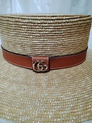 Elegante cappello di paglia con nastro in pelle e logo GG. - Materiale: paglia - Dettaglio: nastro in pelle marrone - Logo: fibbia dorata con doppia G, mis.M/57