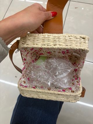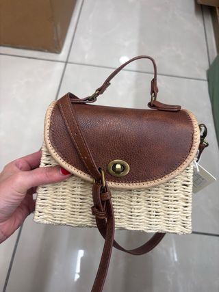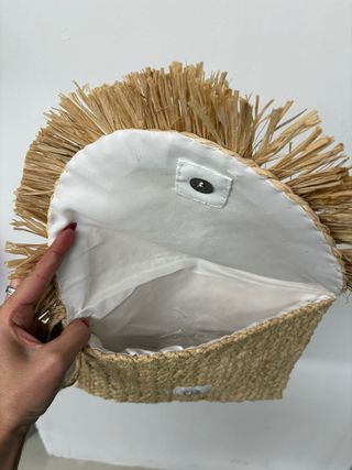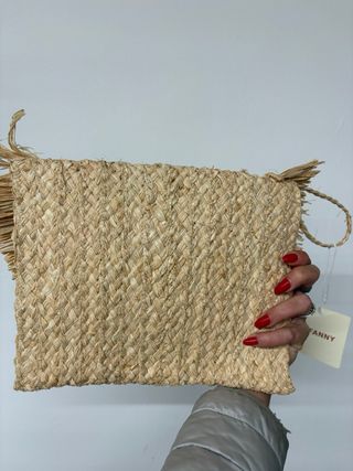 Piccola pochette in paglia intrecciata, perfetta per un look estivo. - Materiale: paglia - Tracolla regolabile - Chiusura a girello