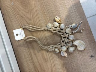 Collana YOLA con dettagli marini. - Realizzata con cordino beige e oro. - Decorata con perle e conchiglie. - Elementi in acciaio inossidabile.