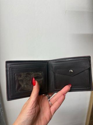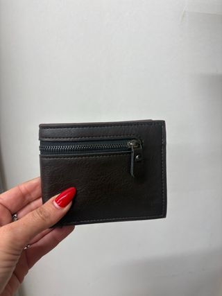 Elegante portafoglio da uomo in similpelle. - Design compatto e funzionale. - Tasca esterna con zip. - Finitura liscia.