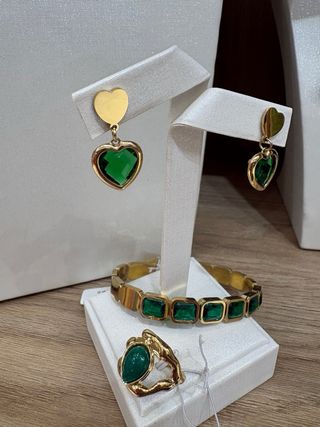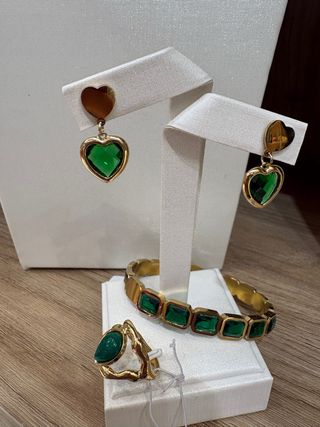 Set Anello, Orecchini e Bracciale Cuore Verde