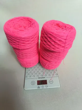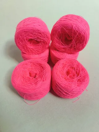 6 gomitoli di filato misto lana a 3 fili - Colore fucsia intenso con sfumature. - Peso totale 379g.