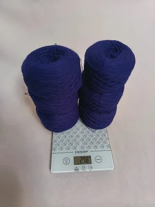 Due gomitoli di filato misto lana. 6 gomitoli - Colore blu scuro/navy - Peso totale 278g.