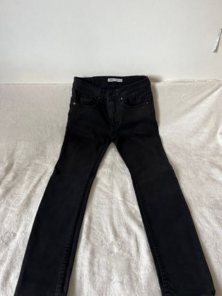 Jeans Zara neri. - Vestibilità slim. - Chiusura con zip e bottone. - Tasche anteriori e posteriori.