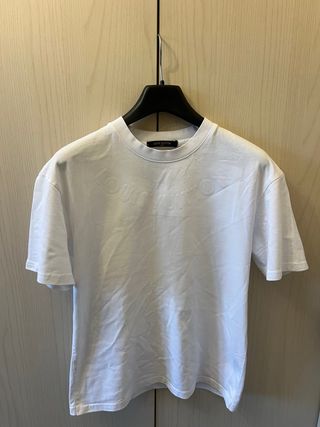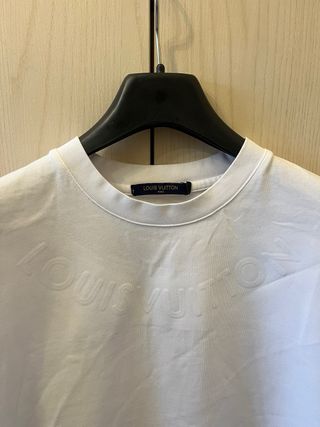 T-shirt Louis Vuitton in cotone bianco con logo tono su tono. - Logo Louis Vuitton in rilievo sul davanti.