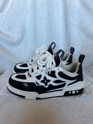 Eleganti scarpe in un classico design bicolore. - Dettagli floreali distintivi. - Inserti a scacchiera. - Suola robusta con motivi. - Lacci bianchi.