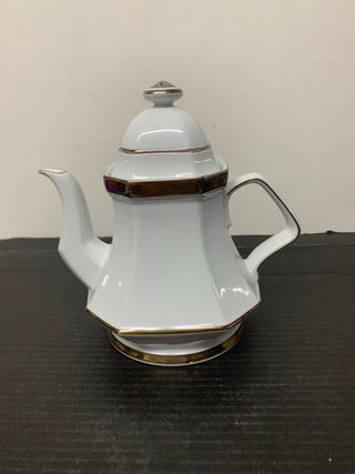 Elegante teiera in porcellana, con finiture dorate che aggiungono un tocco di raffinatezza. - Design a più facce. - Base e coperchio decorati con dettagli dorati. - Beccuccio affusolato e manico ergonomico.