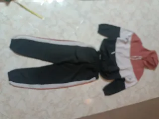 Tuta sportiva da donna in poliestere. - Design color block con nero, bianco e rosa. - Pantaloni con elastico in vita e dettagli a contrasto sulle gambe. - Felpa con cappuccio e laccetti regolabili.