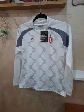 Maglia da calcio del Milan, modello a maniche lunghe. - Design con motivo grafico tono su tono. - Inserti grigi sulle spalle e sui fianchi. - Logo Puma e stemma del Milan sul petto. - Tecnologia Drycell per la gestione dell'umidità.