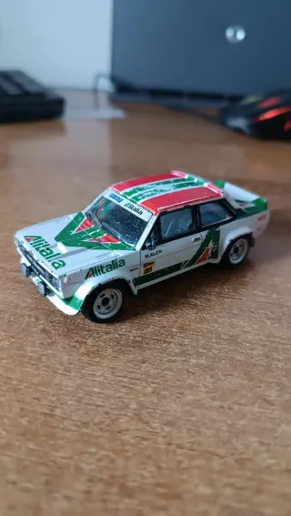 Modellino di auto da rally Fiat 131 con livrea Alitalia. Scala 1/43 - Dettagli fedeli alla versione da competizione. - Colori bianco, verde e rosso. - Sponsor Alitalia ben visibili.