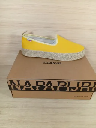 Scarpe Napapijri originali, numero 39. Nuove originali - Modello slip-on. - Tomaia in tessuto giallo. - Suola con dettaglio in corda. - Logo Napapijri sulla linguetta posteriore.