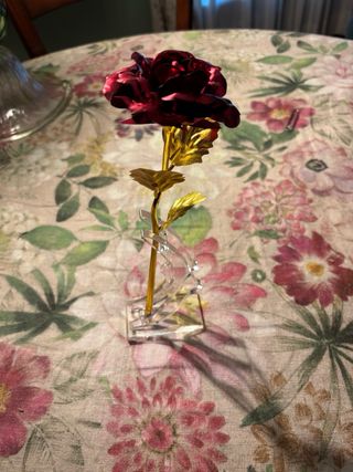 Elegante rosa decorativa in metallo, con petali rossi e stelo dorato. - Materiale: Metallo - Colore: Rosso e oro