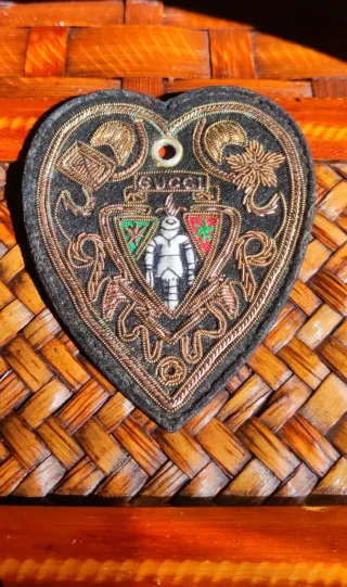 fischetta in acciaio con emblema ecclesiastico della "cunfraternita di santa croce bastia ". in ottimo stato , come da foto