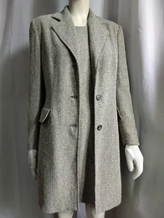 Bel completo Vestito piu'cappottino Taglia 44 Ottime condizioni - Giacca con chiusura a bottoni. - Tessuto bouclé. - Dettagli con tasche. - Guanti bianchi inclusi.