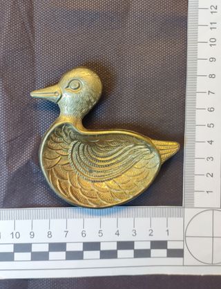 Set di cinque posaceneri in ottone, ognuno a forma di animale. - Posacenere a forma di tartaruga - Posacenere a forma di pesce - Posacenere a forma di gufo - Posacenere a forma di anatra - Posacenere a forma di cavallo