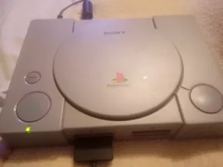Console per videogiochi Sony PlayStation 1 più joystick senza fili.Il filo del joystick è un po' rovinato ma c'è dello scotch. - Colore grigio. - Modello classico. - Ideale per collezionisti.