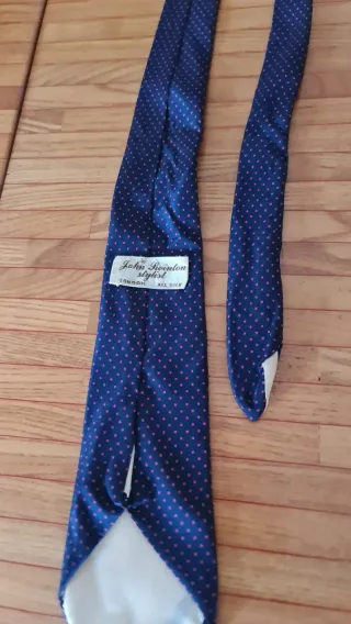 Elegante cravatta vintage con un classico motivo a pois. - Fantasia a pois rosa su fondo blu. - Design firmato John Swinton Stylist.