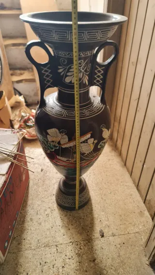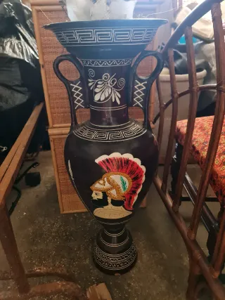 Splendida anfora antica con decorazioni in stile greco. Un pezzo unico che aggiunge un tocco di storia e arte alla tua casa. - Design ispirato all'arte greca classica. - Dettagli dipinti a mano. - Manici laterali decorati.