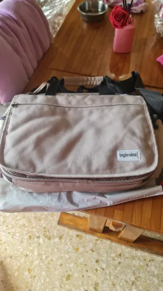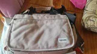 Borsa Inglesina in tessuto color tortora, con manici e tracolla. - Logo Inglesina applicato frontalmente. - Tasca esterna con zip. - Dettagli in rete. - Chiusura superiore con zip.