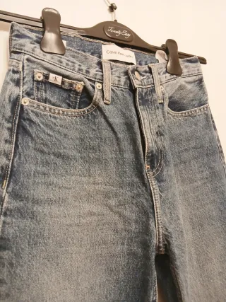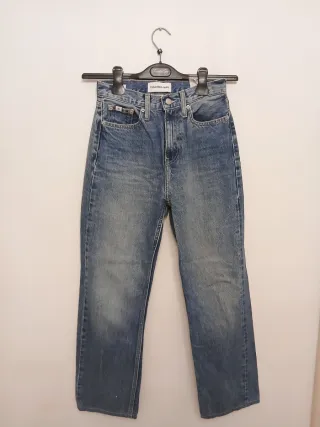 Jeans Calvin Klein da donna in denim. - Modello a vita alta. - Gamba dritta. - Effetto leggermente sbiadito.