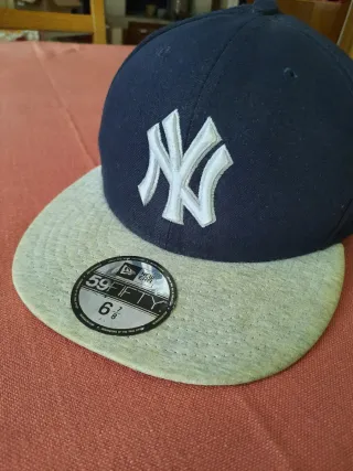 Cappello New Era con logo Yankees. La visiera ha un adesivo (forse togliendolo ci sarà da pulire la traccia di colla). In ottimo stato MA DOVREBBE ESSERE LAVATO. Colore blu e grigio. - Taglia 6 7/8 - Logo New Era sul lato