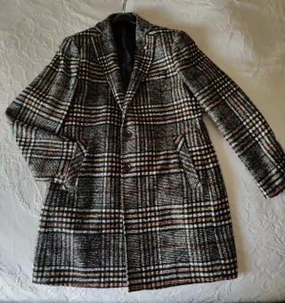 Elegante cappotto sartoriale con un motivo a quadri con vita a stringere. - Design classico con revers. - Chiusura frontale con bottoni. - Tasche laterali. - Fodera interna liscia.