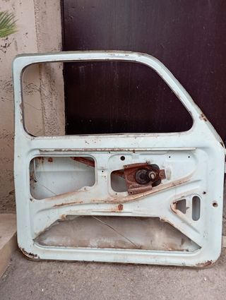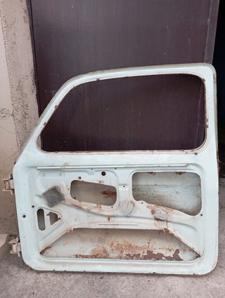 Sportello anteriore destro per Fiat 500 d'epoca. Presenta segni di ruggine e usura dovuti al tempo. - Compatibile con modelli Fiat 500 d'epoca. - Materiale metallico.
