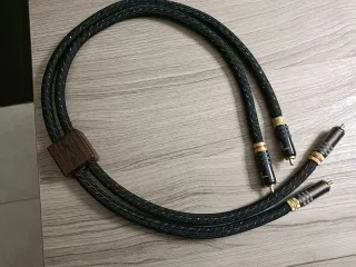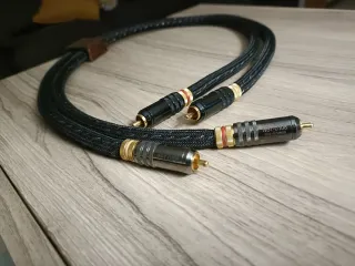 Cavi di segnale audio RCA di alta qualità. - Connettori dorati. - Guaina esterna intrecciata nera. - Dettagli rossi e dorati sui connettori.