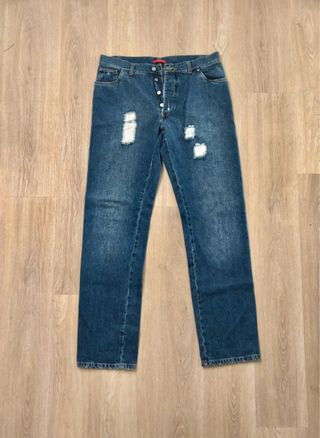Jeans da uomo con gamba dritta e dettagli strappati. - Vestibilità oversize - Chiusura con bottoni - Dettagli strappati sulle ginocchia