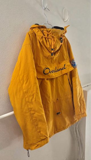 Giacca a vento vintage Overland, un capo unico per il tuo guardaroba. - Giacca modello anorak originale della storica missione "Overland 1: Roma-New York" (1995-1996). Un pezzo di storia della televisione e del design outdoor anni '90. - Cappuccio regolabile, fodera interna in pile, chiusura half-zip. - Taglia: M