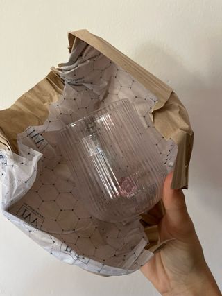 Eleganti bicchieri della linea Gemme di IVV, caratterizzati da un design a coste e un dettaglio interno a forma di gemma rosa. Set di 4 bicchieri, mai utilizzati nella scatola originale