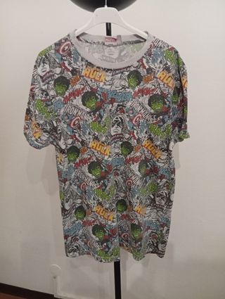 T-shirt con stampa all-over di personaggi Marvel Comics. originale - Design vivace con Hulk, Iron Man e Capitan America. - Colletto girocollo.