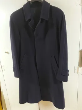 Elegante cappotto da uomo lana e cashmere Cappotto monopetto da uomo in lana e cashmere di colore blu scuro navy, con maniche raglan e chiusura con bottoni a scomparsa. È un modello versatile, adatto sia ad abbinamenti eleganti e formali che a look più casual e streetwear. Perfette condizioni È presente anche la cintura per un look stile trench Torace, da ascella ad ascella cm 61 La manica presa la misura dal collo perché è alla raglan cm 80 Lunghezza cm 104 - Colore blu scuro. - Tessuto di alta qualità lana e cashmere - Design classico con collo a rever. - Tasche frontali. - Polsini regolabili con bottone.