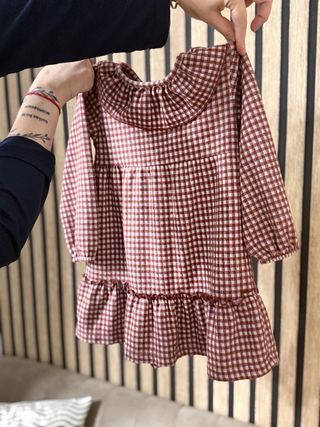 Vestito per bambina firmato Zara, con una fantasia a quadri. - Colore rosso e bianco. - Collo arricciato. - Maniche lunghe. - Volant sul fondo.