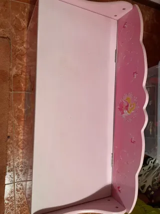Panca per bambini in legno, con una graziosa decorazione a tema principesse. - Colore rosa. - Design con bordi ondulati. - Immagini di principesse e farfalle.
