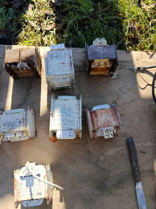 Stock di trasformatori elettrici. - Diverse marche e modelli. - Ideali per ricambi o progetti. - Condizioni variabili, alcuni con segni di ruggine.