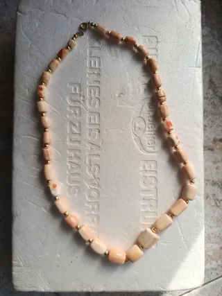 Bellissima collana vintage risalente agli anni '50, realizzata con autentico corallo.Vecchia collana anni 50 circa, a barilotti da mm 5x4 a mm. 10x10 in conchiglia, colore naturale, di ottima qualità e realizzata assolutamente a mano, bellissimo il punto di rosa pesco, trattandosi di materiale marino anche se in pochi punti sono presenti piccoli fori o poche irregolarità, visibili se osservando con attenzione nell'insieme delle fotografie.