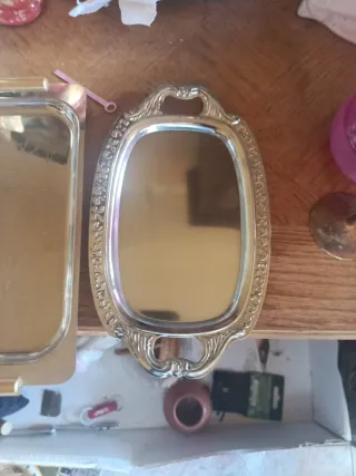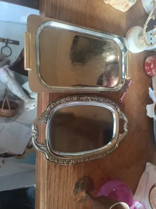 Eleganti piccoli vassoi in metallo, perfetti per aggiungere un tocco vintage alla tua tavola. - Design ispirato agli anni '70. - Finitura bicolore oro e argento. - Manici laterali per una presa sicura.