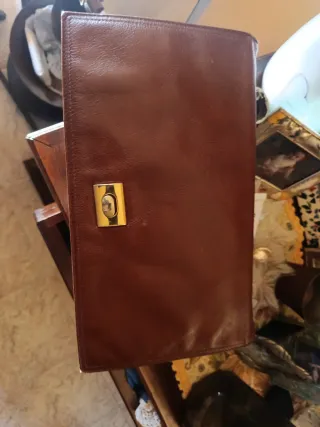 Borsa da donna in pelle marrone vintage anni ,60 70 in perfetto stato no strappi zip perfettamente funzionante - Chiusura a scatto dorata. - Dettaglio catena dorata.