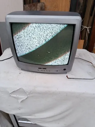 Televisore CRT di colore grigio jq ottimo per retrogaiming o altro senza telecomando - - Pulsanti di controllo sul pannello frontale. - Ingresso antenna.