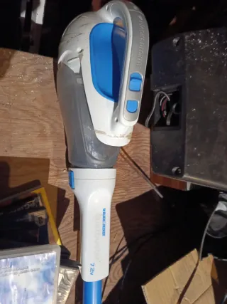 Ricambi per aspirapolvere Black+Decker. Funzionante gancio rotto ma batteria esaurita - Modello 7.2V. - Colore bianco e blu.