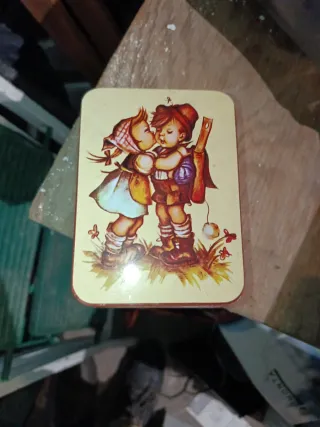 Scatola vintage latta natale con un dolce disegno di due bambini molti fogli originali all interno - Disegno a tema natalizio. - Bordi arrotondati.
