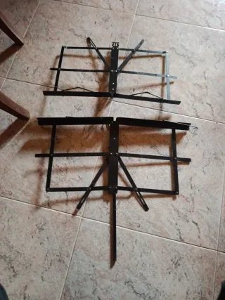 Atril de partituras plegable, ideal para músicos. - Estructura metálica negra. - Diseño plegable para fácil transporte.