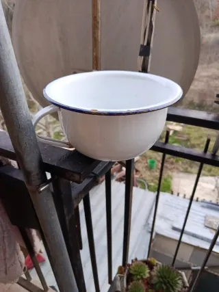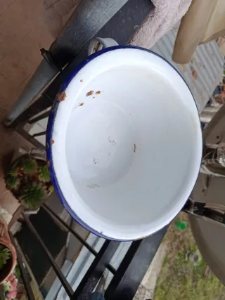 Bacile Bacinella in smalto bianco con bordo blu, dal fascino vintage. - Materiale: Smalto - Colore: Bianco con bordo blu - Stile: Vintage